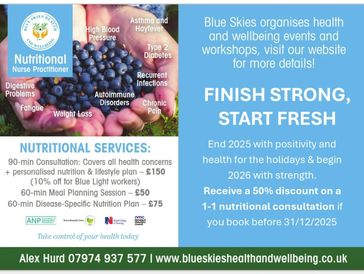 Whether it's to start the New Year with a sustainable, new approach to their diet or to celebrate their birthday by discovering the many ways that food and lifestyle can help them grow older without increasing their health complaints, give Blue Skies a call and see how we can help.